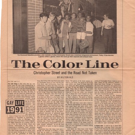 June 12, 2022February 3, 2023 Craig Seymour “The Color Line: Christopher Street & The Road Not Taken” – Hilton Als (Village Voice 6/2/91)